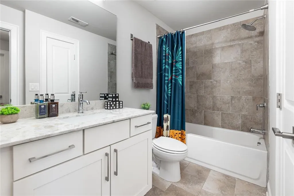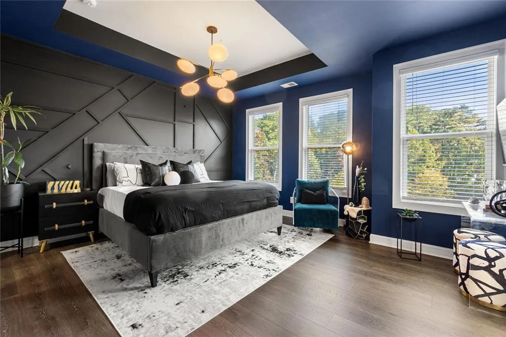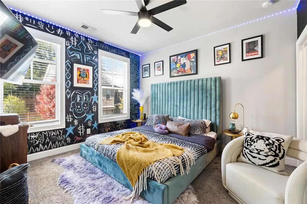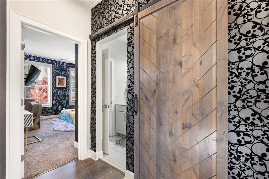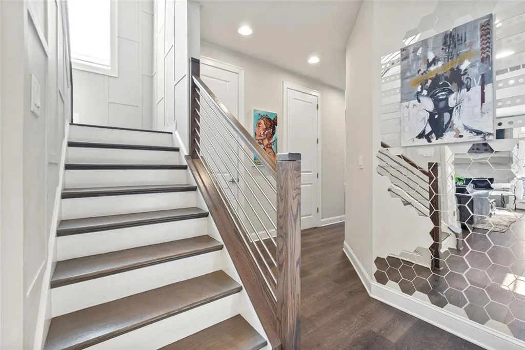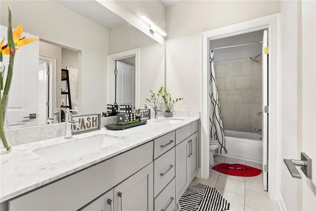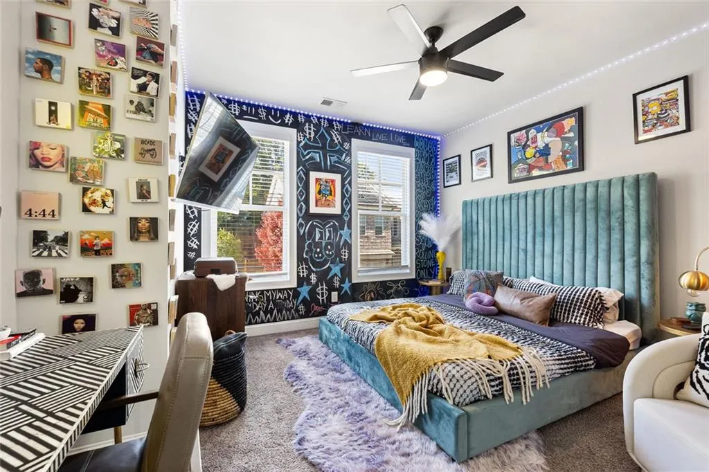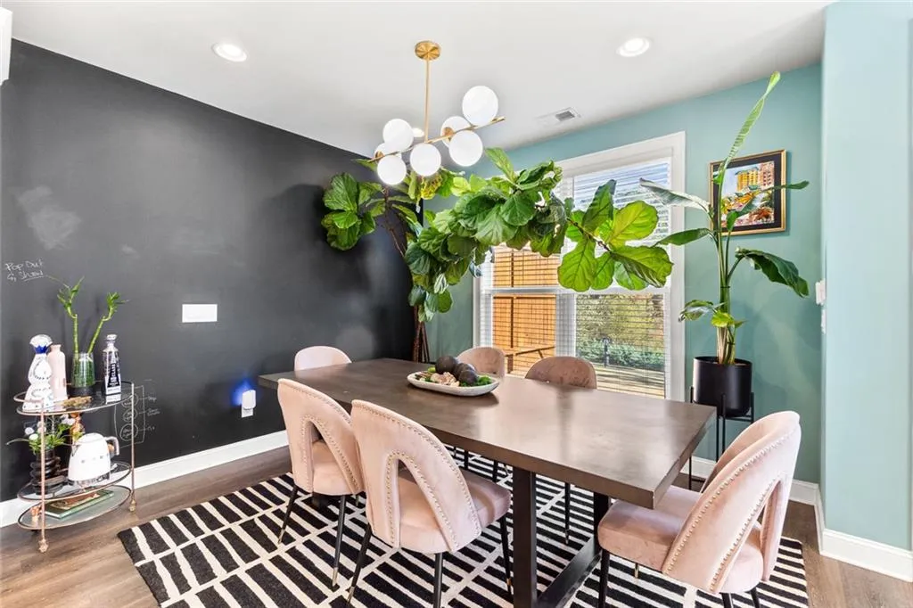 Gorgeous & unique Townhome with FINISHED Basement and PRIVATE FENCED BACKYARD overlooking green space & lake w/fountain. The main floor includes KITCHEN LEVEL GARAGE, a luxurious OPEN PLAN with white kitchen cabinets housing upgraded appliances including DOUBLE OVENS, Cambria Quartz tops & WATERFALL ISLAND, a dining area & spacious family room with LINEAR REMOTE CONTROLLED FIREPLACE. Custom MODERN RAILINGS line the staircase up to the lake facing PRIMARY SUITE which features CUSTOM CLOSET SYSTEM & spa bath with VAULTED CEILING, FREESTANDING TUB & separate shower. Two more spacious bedrooms, shared bath w/DOUBLE SINKS and laundry with folding counter & storage cabinetry finish out the 2nd floor. The basement features a bedroom/office w/WIC currently used as recording studio, a full bath, MEDIA ROOM & tons of storage. OUTDOOR LIVING space includes open upper deck & lower SCREENED PORCH with electrical and TV mount already setup for you. Custom upgrades totaling over $200k were chosen by PROFESSIONAL INTERIOR DESIGNER so this is not the typical builder basic home! GATED neighborhood features HOA maintained yards (front AND back) and provides easy access to GA 400 with the convenience of being mere minutes from Canton Street restaurants and shopping!