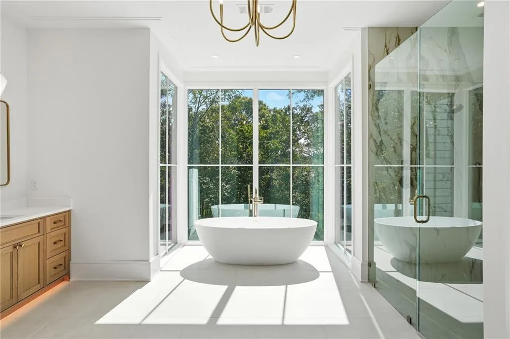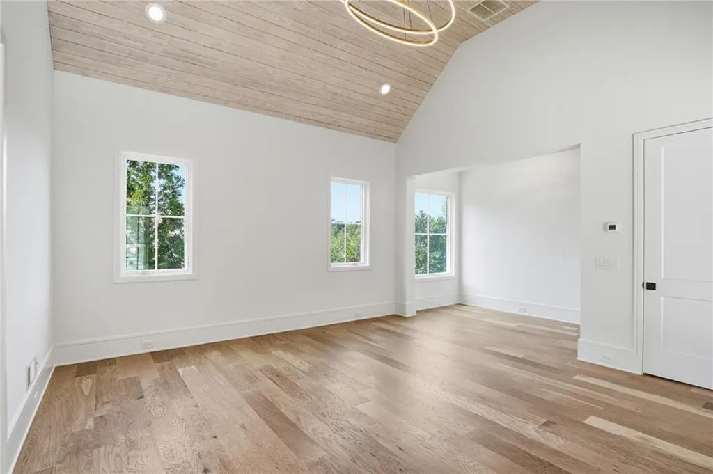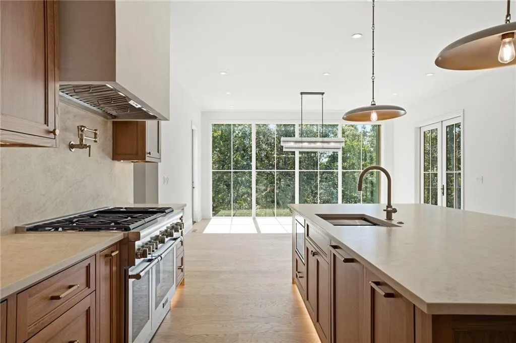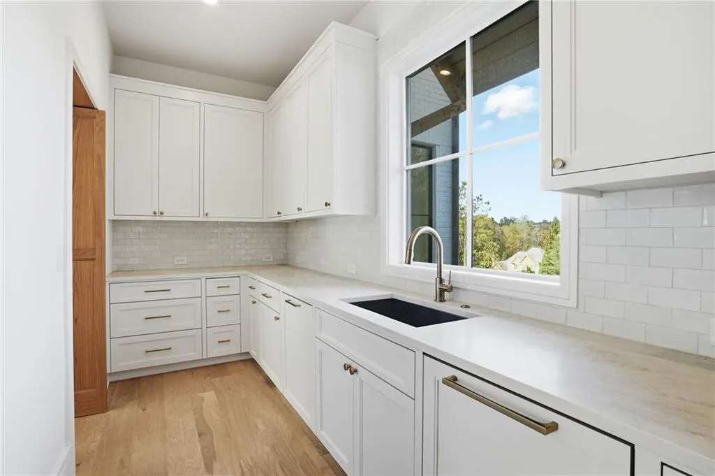 Introducing a stunning new construction by Gable Homes, located in Roswell's prestigious Litchfield Hundred community. This modern craftsman residence combines timeless design with exceptional craftmanship on a private, wooded lot with a fully landscaped yard and spacious 3-car garage. Inside, rich site-finished hardwood floors, vaulted wood-paneled ceilings and floor-to-ceiling windows define the main living spaces. Custom cabinetry is featured throughout, and energy-efficient windows fill the home with natural light. The oversized main-level primary suite offers a serene seating area, a spacious California Closets system, and a spa-like bath with soaking tub and walk-in shower. The chef's kitchen impresses with Thermador appliances, custom-paneled cabinetry, and an oversized island that flows effortlessly into open living and dining areas. A hidden scullery with secondary prep and storage spaces adds both function and discretion-perfect for entertaining with ease. Upstairs, each bedroom includes ample storage with California Closet systems and their own private en-suite, and convenient access to a second laundry room. Additional highlights include tankless water heaters, dual laundries, and a seamless blend of luxury and practicality. Ideally situated near Milton, Crabapple, Alpharetta, and top-rated schools, this home offers refined living in a tranquil, connected setting. Don't miss your chance to own this beautifully crafted home where luxury meets lifestyle.
