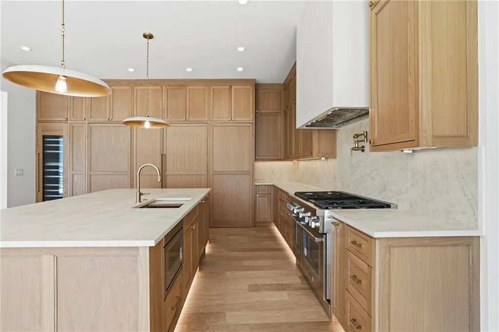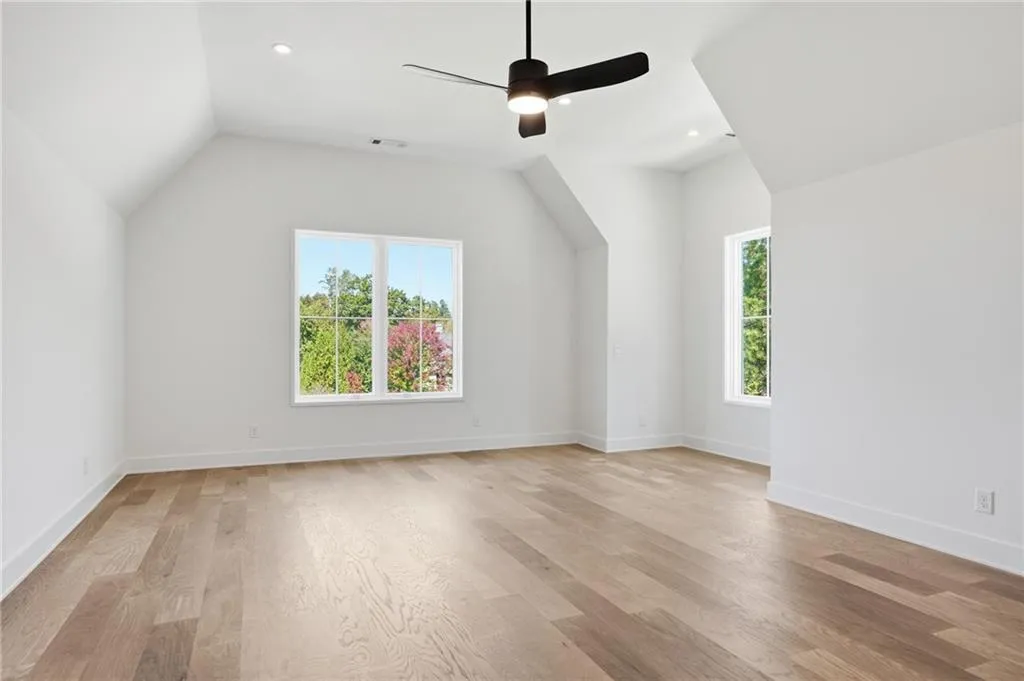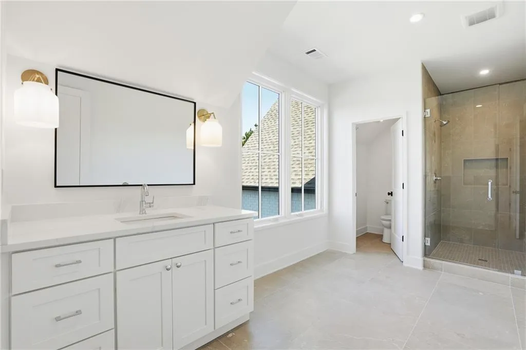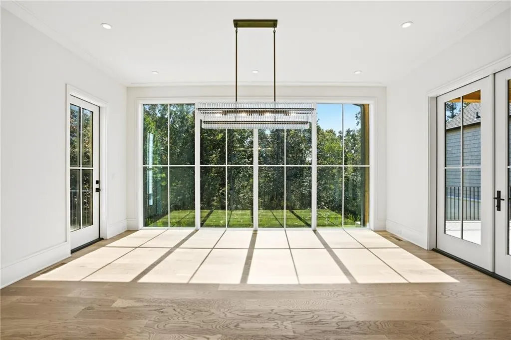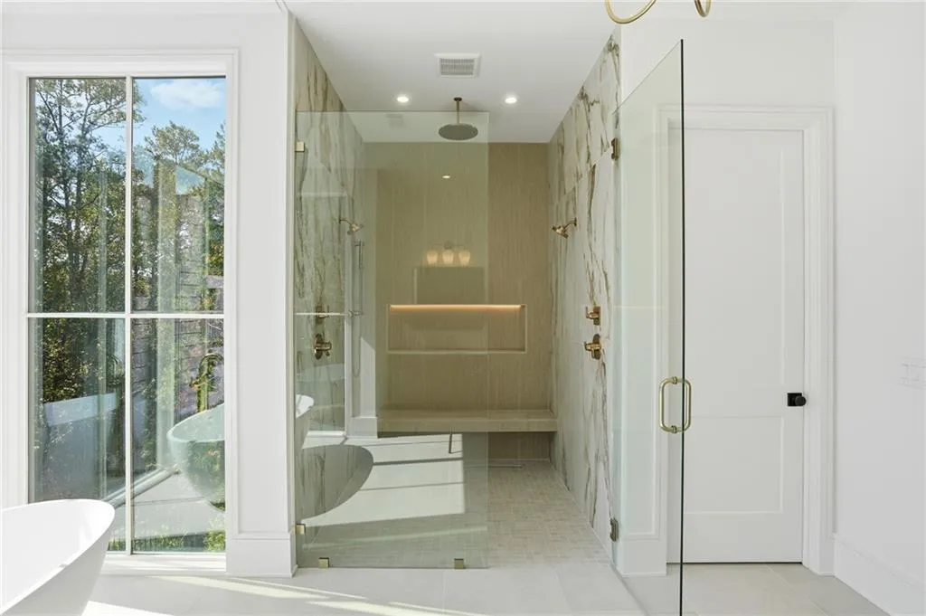 Introducing a stunning new construction by Gable Homes, located in Roswell's prestigious Litchfield Hundred community. This modern craftsman residence combines timeless design with exceptional craftmanship on a private, wooded lot with a fully landscaped yard and spacious 3-car garage. Inside, rich site-finished hardwood floors, vaulted wood-paneled ceilings and floor-to-ceiling windows define the main living spaces. Custom cabinetry is featured throughout, and energy-efficient windows fill the home with natural light. The oversized main-level primary suite offers a serene seating area, a spacious California Closets system, and a spa-like bath with soaking tub and walk-in shower. The chef's kitchen impresses with Thermador appliances, custom-paneled cabinetry, and an oversized island that flows effortlessly into open living and dining areas. A hidden scullery with secondary prep and storage spaces adds both function and discretion-perfect for entertaining with ease. Upstairs, each bedroom includes ample storage with California Closet systems and their own private en-suite, and convenient access to a second laundry room. Additional highlights include tankless water heaters, dual laundries, and a seamless blend of luxury and practicality. Ideally situated near Milton, Crabapple, Alpharetta, and top-rated schools, this home offers refined living in a tranquil, connected setting. Don't miss your chance to own this beautifully crafted home where luxury meets lifestyle.