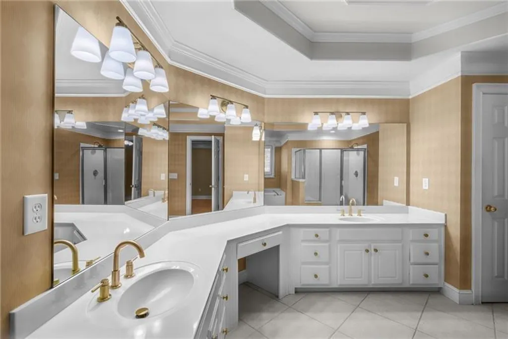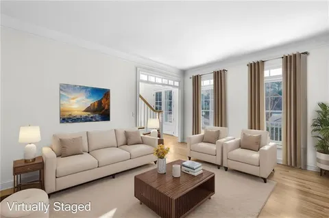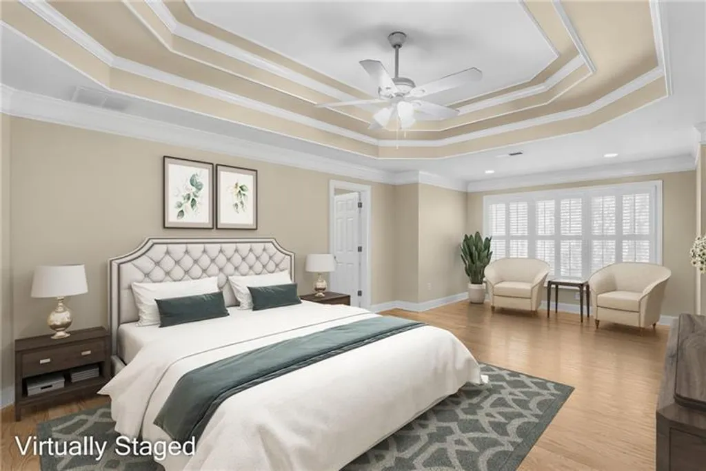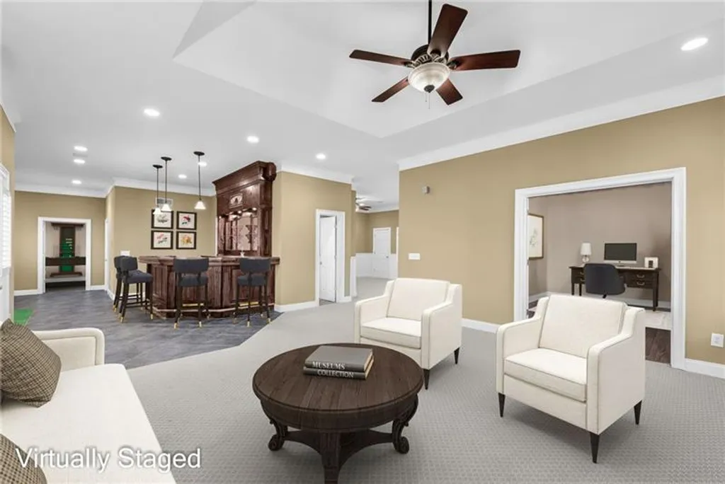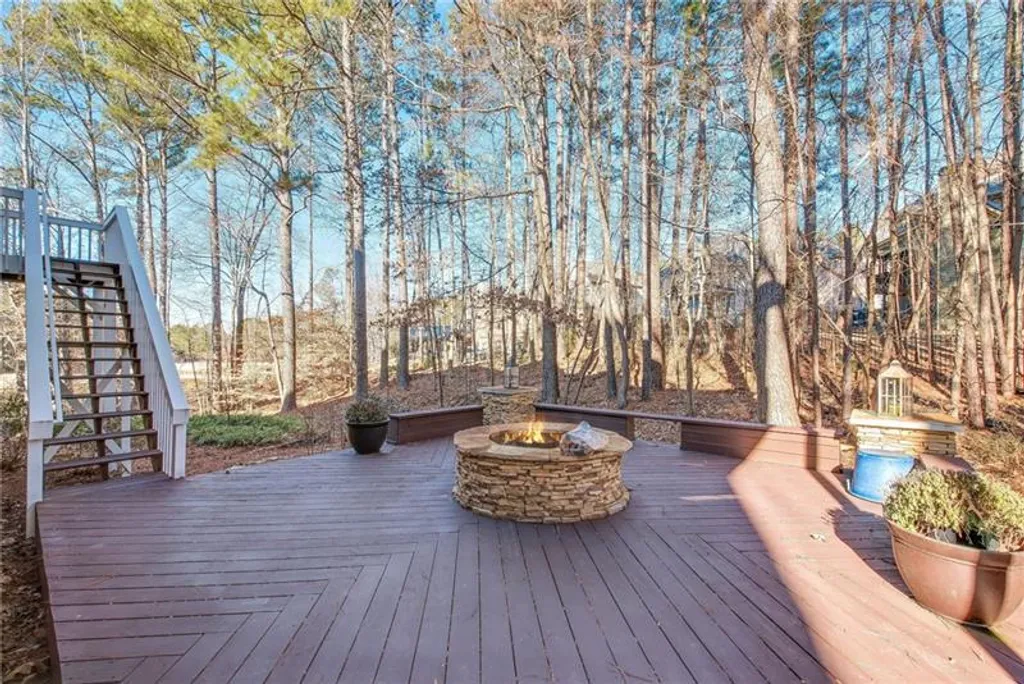 Stunning 6-bed, 5.5-bath home in the prestigious Links at Brookstone, offering over 5,000 sq. ft. of living space in a private cul-de-sac. Located in the highly desirable Harrison school district, this executive home blends elegant design and practicality, perfect for both entertaining and family living. The main level features a grand foyer, refinished hardwood floors, a spacious guest bedroom with a bath, and an open-concept kitchen that leads to a screened-in porch. The family room opens to a deck seasonally overlooking a golf course and pond, while the backyard offers privacy and a low-maintenance design. The upper level includes a luxurious primary suite, three additional bedrooms, and convenient laundry. The fully finished basement boasts a large family room, bar, office, game room, and full bath. Outside, enjoy a built-in fire pit and the potential for a children's play area. Priced below comps for the opportunity to personalize and make it your own. Home has new paint throughout, new flooring and refinished hardwoods. Main level HVAC new in late 2024, HVAC terrace level 3.5 years old - each include 10 year transferable warranty. It offers a combination of comfort and function, while priced below comps to give you the opportunity to make it truly your own. *Please note square footage is approximate and is not warranted by sellers or brokerage* *Please note the HOA is a mandatory $380 per year, there is an additional optional fee of $395 per year for the neighborhood amenities and the country club is a separate entity.*