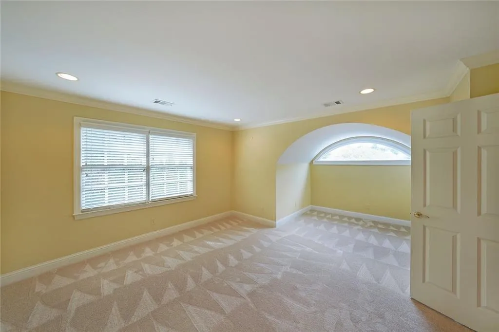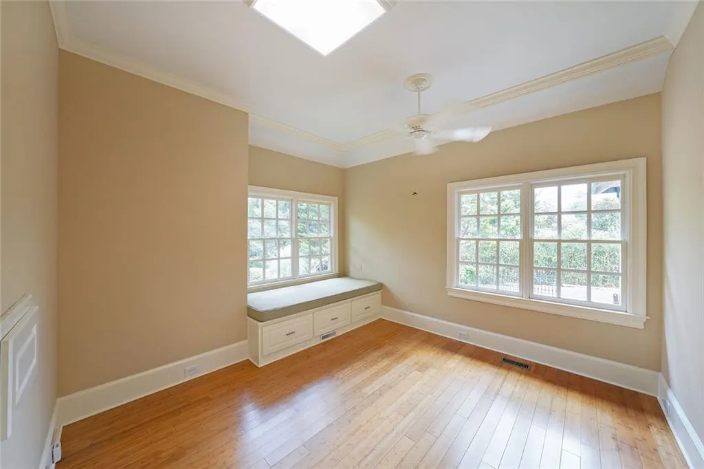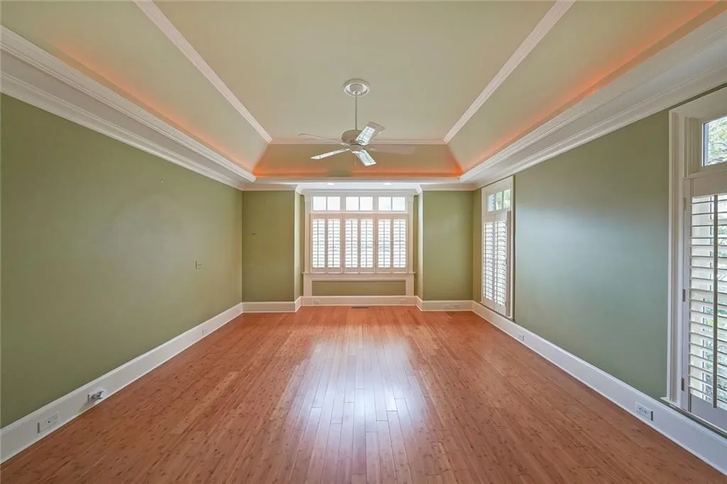 We are thrilled to present an unparalleled opportunity to reside in a truly exquisite executive home, perfectly situated on a cul-de-sac within the prestigious gated community of "The Gates at Marietta Country Club". This residence offers an exceptional blend of sophisticated design, luxurious amenities, and an enviable lifestyle. Step inside to discover a remarkably unique floor plan, thoughtfully designed for ultimate comfort and convenience. The crown jewel of the main level is the magnificent owner's suite, a private sanctuary boasting separate, spa-like 'his and hers' bathrooms, each complemented by its own spacious walk-in closet - offering unparalleled personal space and organization. Throughout the entire main level, elegant bamboo flooring extends seamlessly, enhancing the open and airy ambiance created by soaring 10-foot ceilings. The grand, oversized living room immediately captivates with its custom coffered ceiling and extensive, intricate molding, setting a tone of refined elegance. Flooded with natural light, this space features expansive windows framing picturesque views, complemented by a bespoke built-in window seat stretching the full length of the room, flanked by integrated bookcases - perfect for quiet reflection or showcasing treasured collections. Adjacent to the living area, the inviting keeping room serves as the heart of the home. A full wall of custom built-in shelves adds warmth and character, making this a wonderfully cozy space ideal for relaxed family gatherings and intimate conversations. The bright and cheerful breakfast area, adorned with a large, custom-built buffet seat featuring plush cushions lining a wall of windows, offers a charming spot for casual meals and morning coffee. For more formal occasions, a separate, generously proportioned dining room stands ready to host unforgettable dinners, comfortably accommodating twelve or more guests. The main level also thoughtfully includes a well-appointed private office, providing an ideal environment for productivity, alongside a convenient half-bath for guests. Venture outdoors to a private, screened-in porch, an oasis designed for year-round enjoyment. With its vaulted ceiling and cooling ceiling fan, it provides a serene retreat overlooking the meticulously maintained, private backyard - perfect for enjoying the tranquil surroundings in comfort. Ascending to the upper level reveals a charming Cape Cod inspired layout, featuring additional bedrooms strategically positioned on either side of the hallway, sharing a full, well-appointed bathroom. This level also includes a practical cedar closet, ideal for preserving seasonal garments, and offers effortless access to a vast attic space - eliminating the need for pull-down stairs and providing an abundance of accessible storage solutions. This home has many unique features and is definitely a must see!!
