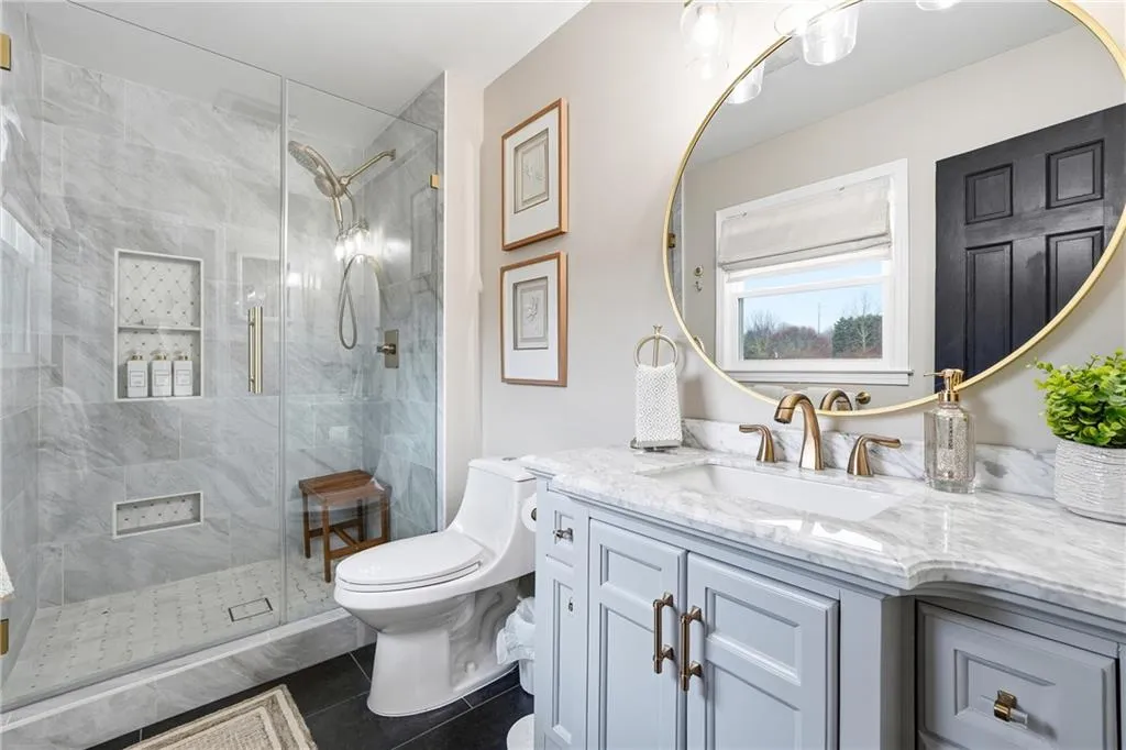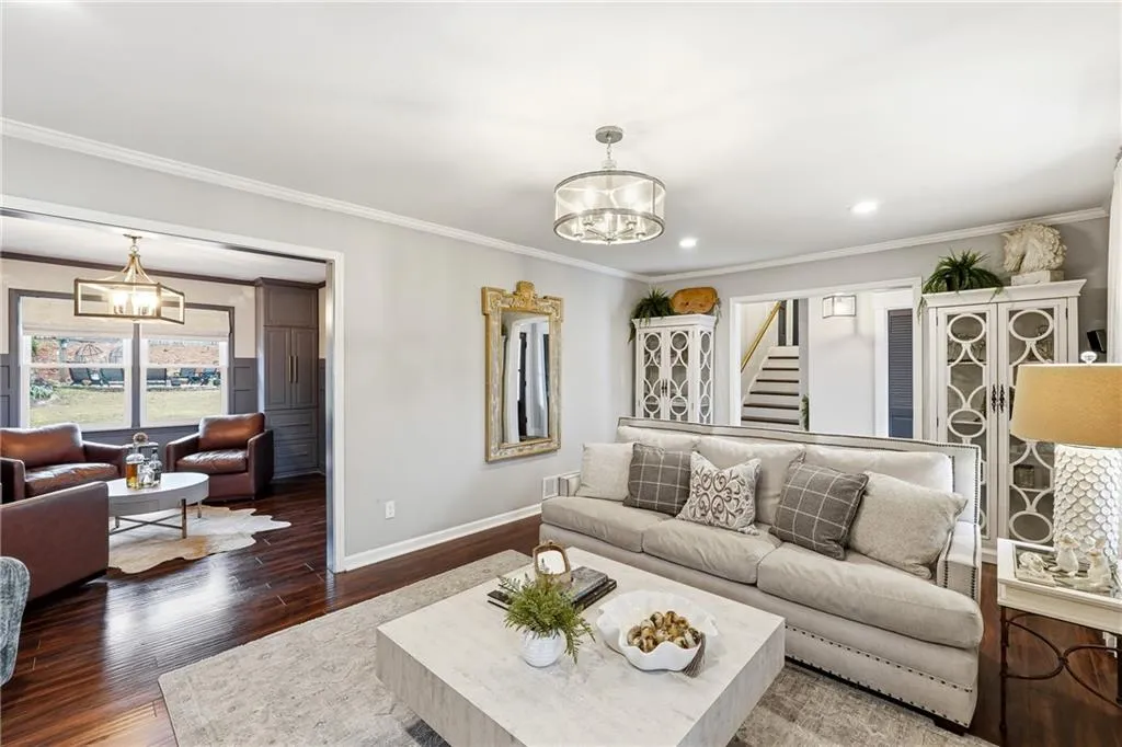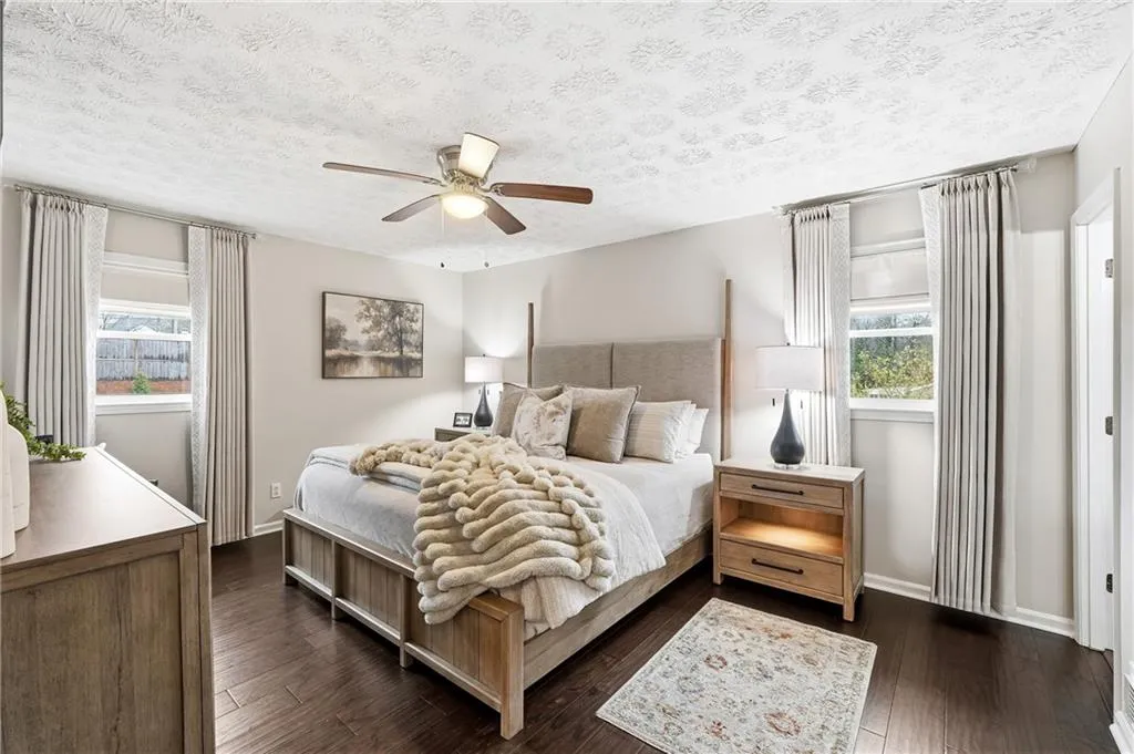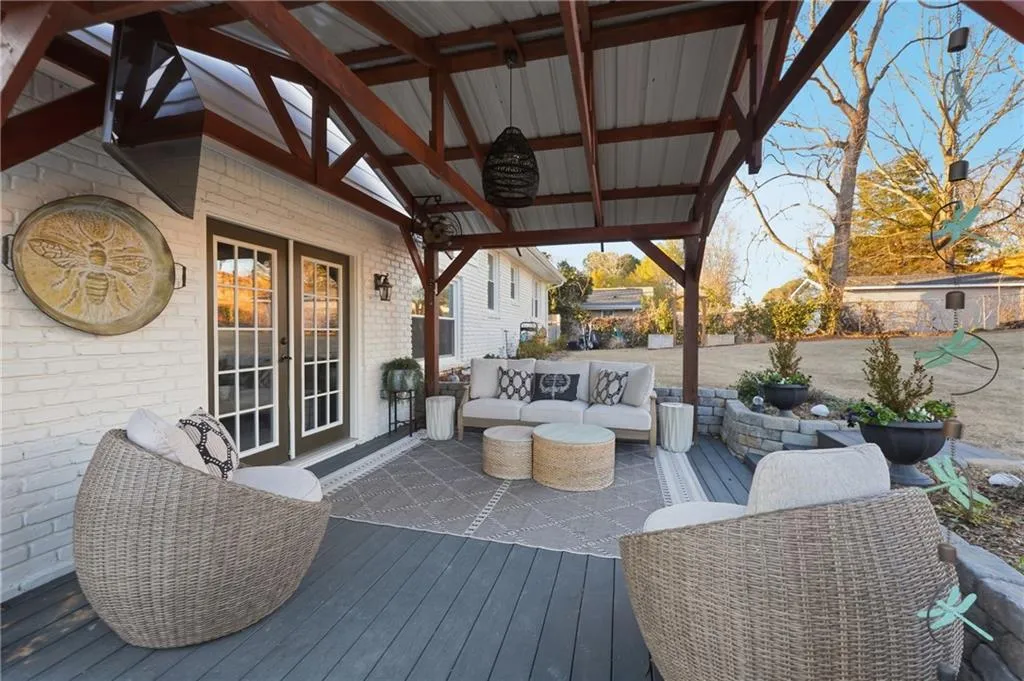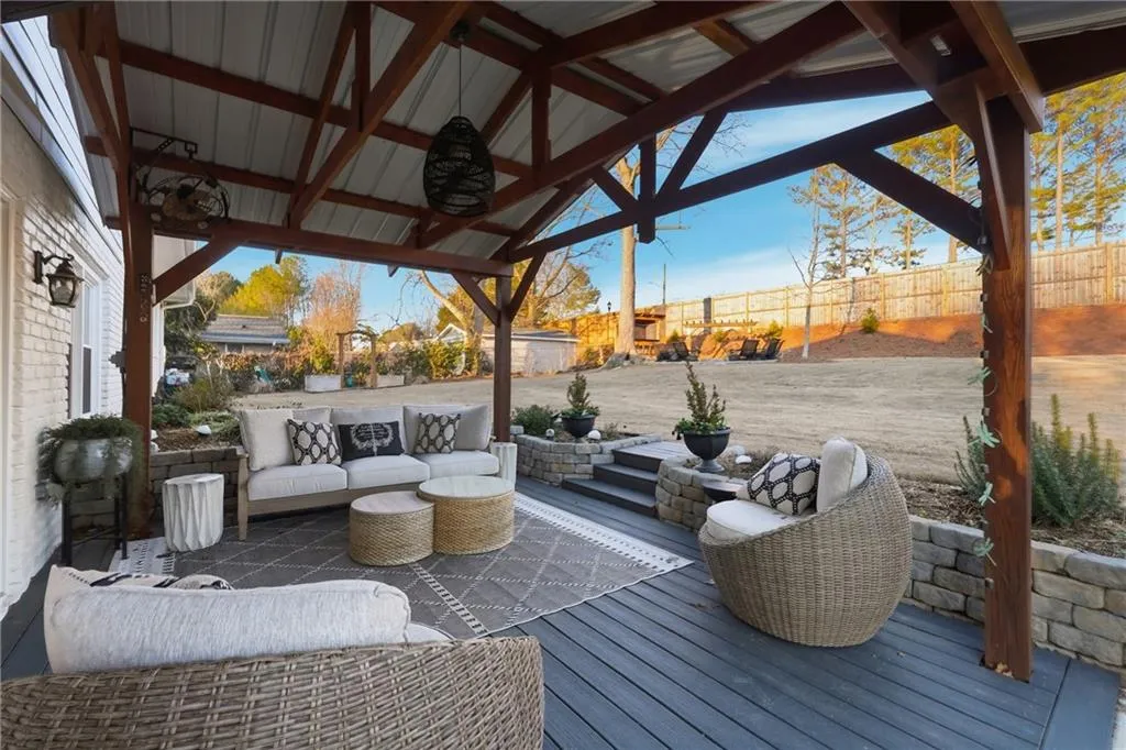Upgraded in every detail! A magazine-worthy feel with timeless design and updates that will stand the test of time. The main living spaces feel inviting and elevated, with a cozy den featuring a painted brick fireplace, custom wood mantel, and statement wood plank ceiling. The kitchen is a standout, featuring custom cabinetry with built-ins and pullouts, a custom marble and glass tile backsplash/wall, natural quartzite countertops, a ZLINE commercial range, a custom wood vent hood with a commercial ZLINE vent blower vented outside, custom pendant, under-cabinet, and recessed lighting, a microwave drawer, and a built-in banquette. The dining room continues the theme with custom cabinetry, display storage, and wainscoting details. Upstairs, the primary suite includes a fully renovated bath with an enlarged custom tile shower, frameless glass, and updated fixtures. Secondary bedrooms and baths have also been tastefully updated with quality finishes. New hardwood floors, fresh interior paint, updated trim, lighting with dimmers, custom storage throughout, and so much more. Step outside to an entertainer's dream. The backyard features a covered patio with lighting and fans, a Trex floating deck, an outdoor 48 smokeless stone fire pit, raised garden beds, privacy fencing, and multiple spaces to relax or host year-round. Other notable mentions: Major systems and exterior upgrades include a solid walnut front door, complete exterior paint for siding and brick, added Tyvek and insulated sheathing, new Hardie board-and-batten siding, trim, fascia, porch railings and trim, porch ceiling, new updated finish trim molding, whole-house high-efficiency premium vinyl windows with top- and bottom-tilt for cleaning, a new roof, gutters with leaf guards, and less than a two-year-old HVAC system. This home offers the rare combination of thoughtful design, quality craftsmanship, and inviting indoor-outdoor living - all in a prime Dunwoody location.